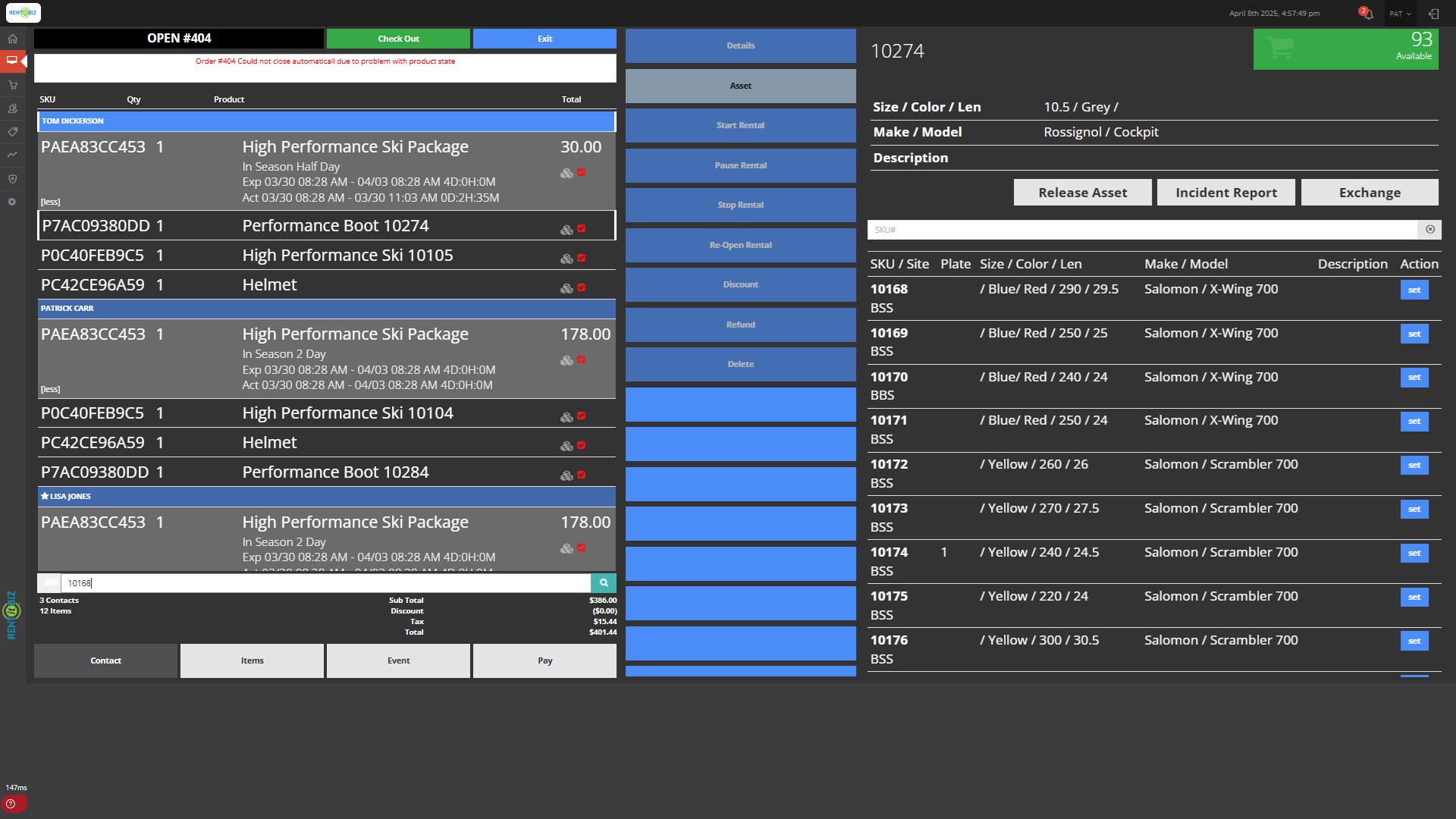 To assign an SKU to an asset, you can simply scan the barcode on the item. Alternatively, you can click Asset (Middle Screen), select SKU or type in white bar in lower left screen, and press Set. (Skip this step if not tracking Assets)
