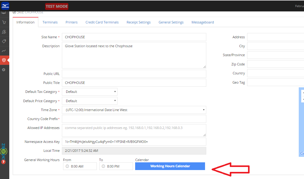 After pressing the Working Hours Calendar button it will take you to the new page. Here is where you set the store active hours.